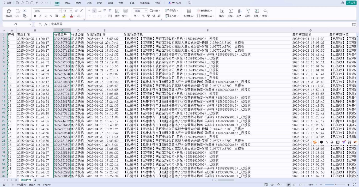 很多人习惯把 Excel 存成.xls 旧版本(2003 版及以前),但固乔优先支持.xlsx 格式(2007 版及以后),旧格式可能导致数据读取不全;另外,WPS 表格若存成 “WPS 表格格式(.et)”,也可能无法识别,建议统一存为.xlsx 格式。 2. 存在合并单元格或空行表格中若有合并单元格(如合并 “快递单号” 表头单元格),软件会误判数据列位置;空行则会导致导入时出现 “空白单号”,过滤后漏查订单。小林之前的表格有 3 处合并单元格,拆分后导入成功率从 50% 升到 100%。 3. 表头 / 多余列未删除若 Excel 中除了 “快递单号” 列,还包含 “订单金额”“客户姓名” 等多余列,且未删除表头,软件可能误将表头或多余列数据当成单号导入。正确做法是只保留 “快递单号” 一列,且删除首行表头(如 “快递单号”“物流单号” 等文字)。