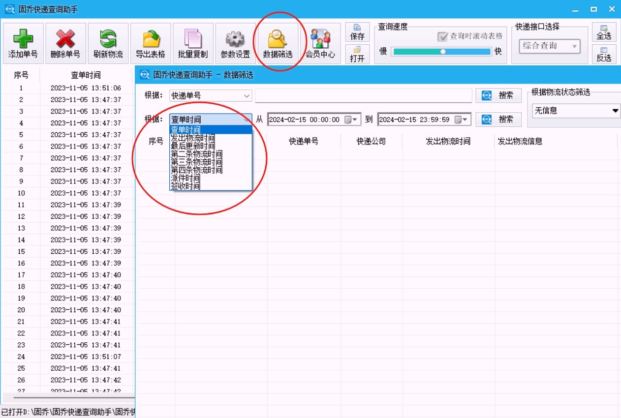 比如导入含子母件的订单列表,软件会自动关联关联单号的物流信息,同步结果中能清晰呈现整体运输进度,这对电子产品等高值货品的物流跟踪极其实用。同时,它支持 “派件人 / 收件人信息关联筛选”,同步完成后可快速定位目标订单,客服回应用户查单时效率大幅提升,无效工作量降低 30% 以上。 3. 同步成本:包月不限量,长期使用更划算很多软件的 “多单号同步” 藏着收费套路,而固乔快递查询助手采用包月包年收费模式,且不限单量同步查询。日均千单的商家折算下来,每万单同步成本不到 10 元,远比按单计费的工具划算。 更贴心的是,它支持对接快递鸟免费接口和邮政协议接口,不用额外购买 “同步加速包” 或 “高级筛选权限”。中小电商从日百单到日万单的业务增长,同步功能始终稳定可用,不会因单量增加额外收费,长期使用成本可控性极强。 二、其他软件同步性能实测:短板明显