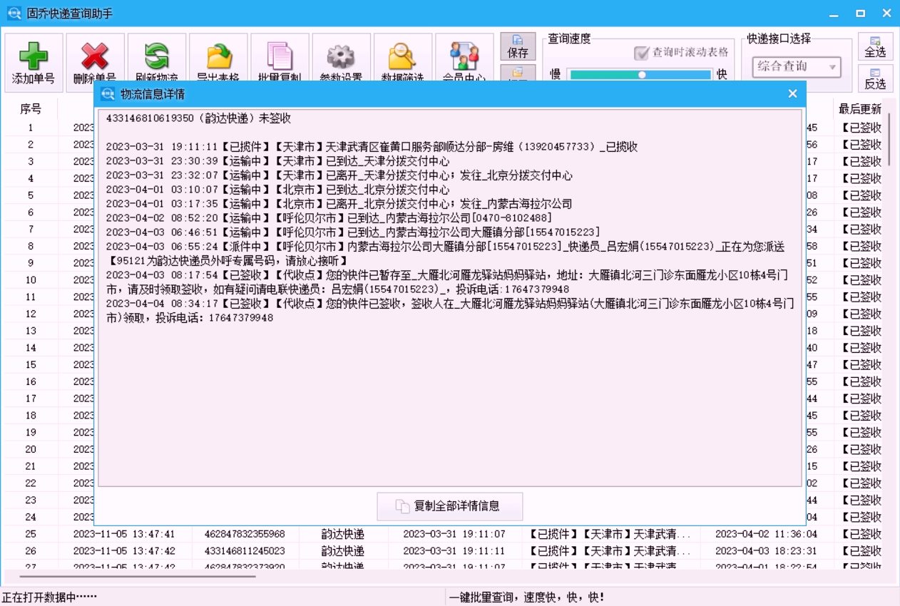 2. 包月不限单,成本口碑碾压同行“隐性收费” 是很多工具的口碑黑洞:免费版限 100 单 / 天,超了按单付费,单量涨了成本直接翻倍。有商家算过一笔账:日均 2000 单,按单付费的工具每月要花 3000 元,一年就是 3 万 6。 固乔快递查询助手彻底打破这种模式,采用包月或包年制收费,付费后不限单量查询,单量再涨费用也不变。按日均 2000 单计算,用它一年能省近 3 万元。更划算的是,它还支持对接快递鸟免费接口和邮政协议接口,查邮政快递不用额外花钱,进一步降低工具成本。 单人靠它就能完成多人的查单、统计工作,不用再专人盯岗,人力成本也省了不少。中小商家单量逐年增长,这种 “一次付费长期划算” 的模式,自然收获满满好评。 3. 全角色适配,体验口碑超预期