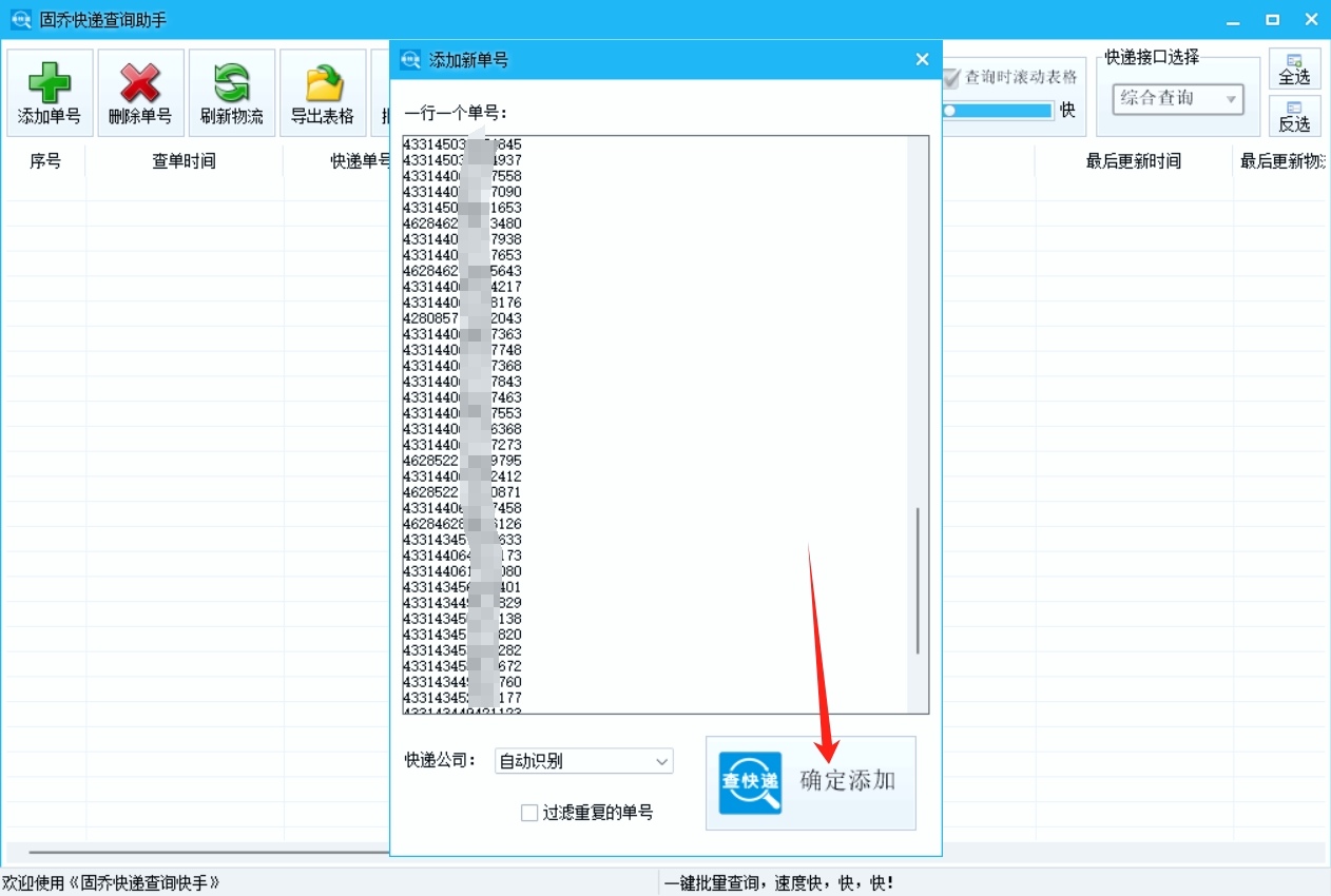 1. 5 分钟万单,效率口碑无竞品商家吐槽最多的就是 “查单慢”:大促上万单查到大半夜,人工逐条核对更是耗时耗力。某美妆电商老板说:“以前雇两个客服专门查单,双 11 还得加班,现在用固乔,一个人轻松搞定。” 固乔快递查询助手的效率堪称行业标杆。它采用分布式并行查询技术,彻底避开接口限流瓶颈,实测 5 分钟就能完成 1 万单查询,1000 条单号仅需 40 秒左右。对比人工优势极其明显:核查 “已揽收未发出” 订单,人工翻找 1 小时,用它筛选仅需 2 分钟,效率提升超 10 倍。 更贴心的是,它能自动识别快递公司、过滤重复单号,还能填充物流信息,直接减少 30% 以上的无效工作量。大促期间稳定性也不含糊,8000 条单号查询仅需 4 分钟,全程无卡顿,这也是它能积累百万用户的关键原因。
