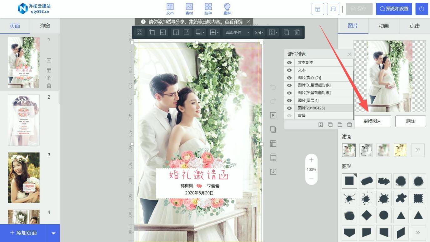 方式二:新建空白 H5:点击【新建空白作品】,在左侧【页面管理】点击【+】,添加 “首页” 和 “SIRI 助手页”,首页用【文本】控件加标题 “点击召唤品牌小助手”,再用【按钮】控件加 “进入助手” 按钮,引导用户跳转; 设置首页跳转(可选):选中首页的 “进入助手” 按钮,右侧属性栏找到【点击】,选择【跳转页面】,勾选 “SIRI 助手页”,用户点击按钮就能进入交互页面。 第二步:添加 H5 SIRI 助手功能,设置核心交互逻辑这是最关键的一步!乔拓云的 “趣味” 控件里藏着 SIRI 助手功能,跟着步骤走,就能实现自定义语音交互。 找到 SIRI 助手功能入口:点击左侧【控件】-【趣味】,在趣味控件列表中找到【SIRI 助手】,按住鼠标将其拖到 “SIRI 助手页” 的中间位置(方便用户看到交互区域);